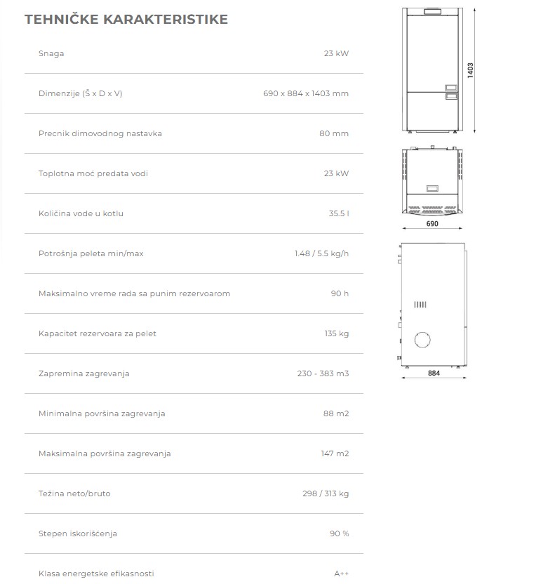 - Veličina rezervoara za pelet pruža mogućnost duže autonomije rada kotla.