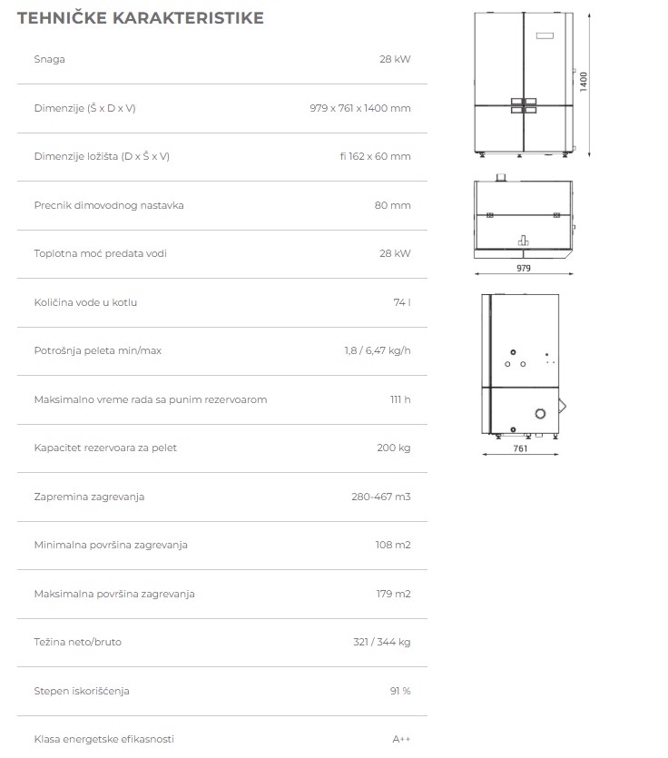 - * opciono povezivanje pufera, dodatni rezervoar peleta, senzor nivoa peleta