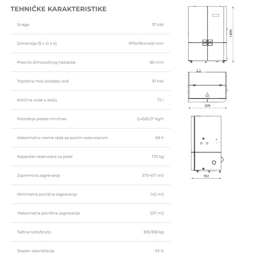 - Veliki kapacitet spremnika za pelet omogucava veću autonomiju u radu.