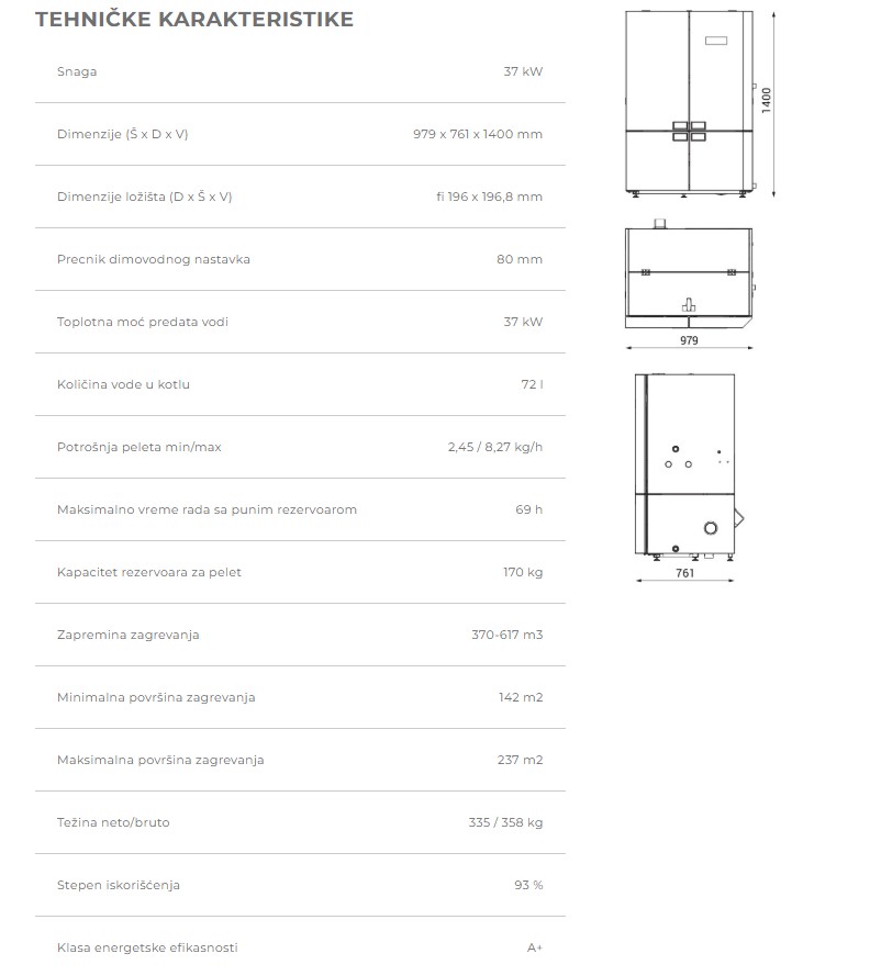 - Omotač izrađen od kvalitetnog lima, zaštićen u procesu farbanja i lakiranja i otporan na visoke temperature.