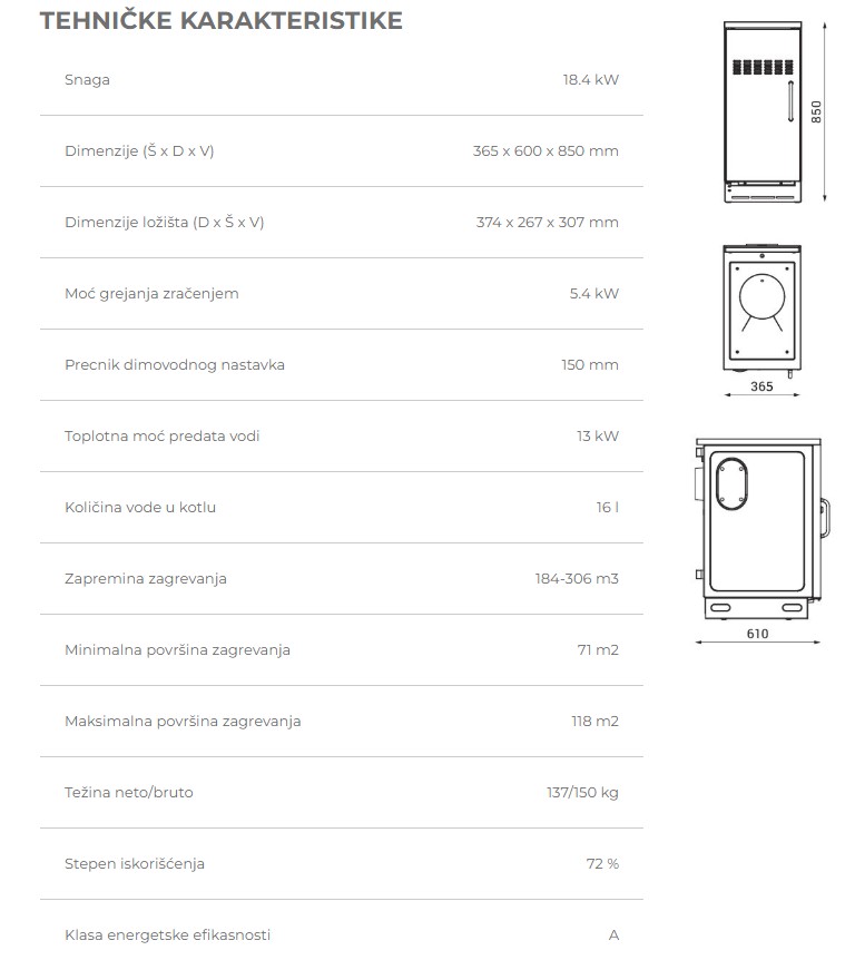 - Ugrađena cevna zmija (bakarna cev) koja kada je u vezi sa termoventilom služi kao termoosigurač od eventualnog pregrevanja štednjaka