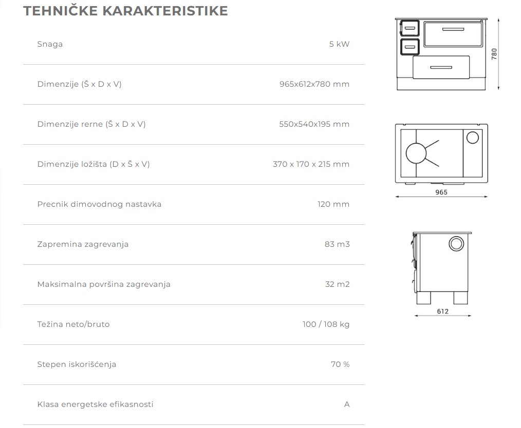 - Štednjak izrađen od kvalitetnih livenih i limenih delova koji omogućavaju duži