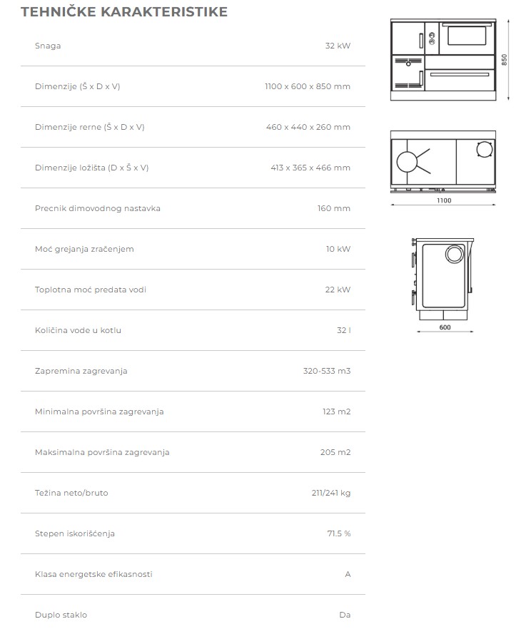 - Kotao izrađen od specijalnog kotlovskog lima.