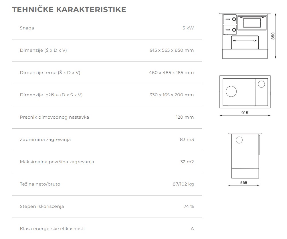 - fioka za gorivo se nalazi u donjem delu štednjaka – lako se pokreće