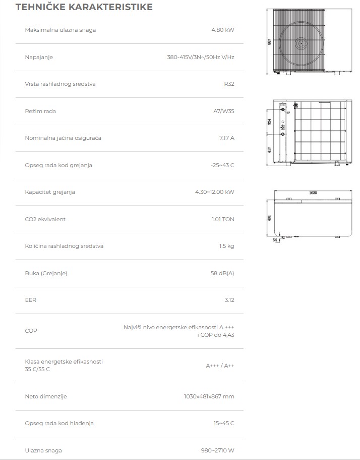 Monoblok toplotna pumpa serije R32 projektovana je za efikasan rad kako u individualnim stambenim jedinicama tako i u manjim komercijalnim objektima.